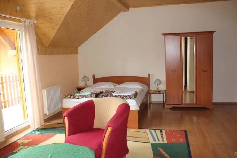 Pokoje standard: 2-osobowe z łazienkami (brak suszarki do włosów, ręcznik na osobę na cały pobyt), TV (pokoje posiadają balkon), wyposażone w szklanki. Czajnik bezprzewodowy jest dostępny na każdym piętrze. Pokoje na parterze lub I piętrze. BRAK POKOI 1-OSOBOWYCH!