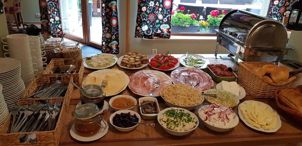 - wyżywienie: 2 posiłki dziennie – śniadania w formie bufetu i