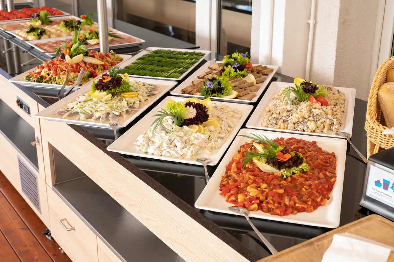 All Inclusive - śniadania w formie bufetu 08:00-11:00*, lunche „pod chmurką” (ciepła zupa, przekąski i bufet sałatkowy) 12:00-14:00* oraz obiadokolacje w formie bufetu 15:00-19:00*. Podczas posiłków woda, kawa, herbata i soki bez ograniczeń. Dodatkowo w barze letnim przy basenie open bar z nielimitowanymi napojami alkoholowymi i bezalkoholowymi 10:00-23:00*. Napoje alkoholowe - piwo, wino białe/czerwone i wybrane drinki np. Mojito, Daiquiri, Cuba Libre, Spritz. Napoje bezalkoholowe - woda gazowana/niegazowana, sok pomarańczowy/jabłkowy, pepsi, mirinda, 7 up, kawa i herbata. Lunch „pod chmurką” nie obowiązuje w dniu przyjazdu i w dniu wyjazdu. Pobyt rozpoczyna się obiadokolacją w dniu przyjazdu i kończy się śniadaniem w dniu wyjazdu. *Podane godziny mogą ulec zmianie.